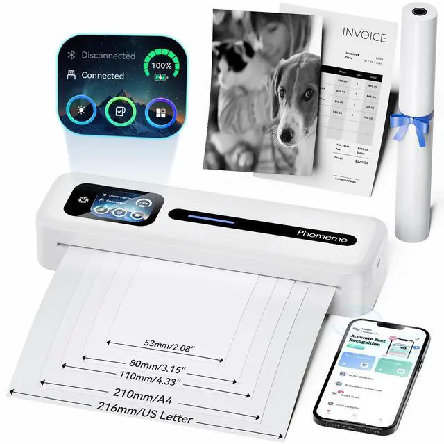 Multi-Size & Multi-Type Paper Support: Supports 8.5" x 11" US Letter, A4, 2.08 '' (53mm), 3.15 '' (80mm), and 4.33 '' (110mm) thermal paper. Compatible with thermal roll paper, folded thermal paper, and single-sheet thermal paper. Meet diverse printing needs, from detailed reports to quick notes. For example, a student can print class notes on smaller roll paper, while a business traveler can print contracts on US Letter or A4 paper. This flexibility ensures you can handle any printing task with ease ^^ Inkless Printing with 300dpi