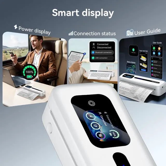 User-Friendly Touchscreen Smart Printer: The M832D mobile printer features an upgraded smart digital display offers easy access to battery and connection status, and intelligently identifies the paper placement for precise printing, making it incredibly easy to monitor and adjust settings, even for first-time users or the elderly. For example, a beginner can easily check the battery level before printing or adjust paper settings without any guesswork. This intuitive display ensures a seamless printing experience, helping users achieve the best print results quickly and effortlessly ^^