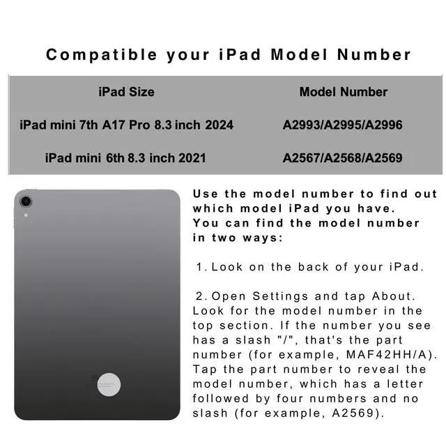 Fit for Latest 8.3 inch iPad mini 6th 2021 Generation Model number A2569/A2568/A2567 (Please turn over your iPad check it at first before purchase) ^^ The RGB color backlit keyboard allows you to use your iPad mini 8.3 -inch at all hours, day and night. Not to worry if you drift off - the case works with your device auto sleep wake function to keep safe all the important things you may be working on ^^ The case features a smart island keyboard attachment for optimal typing ideal for taking fast and concise notes on the move.