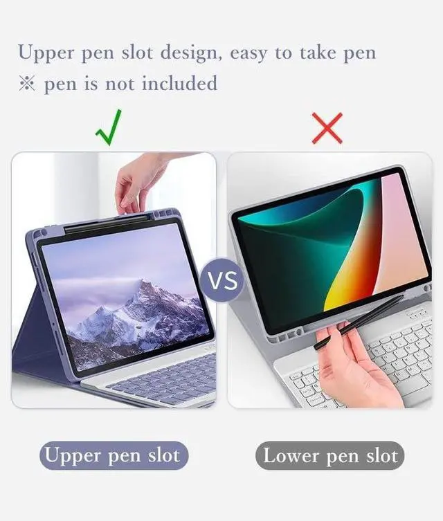 Keyboard Case With Pencil Holder New Keyboard Case with Upper pen slot design, convenient for you to take out the pencil from the pencil holder at any time.