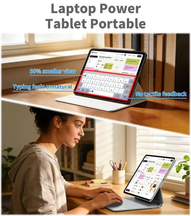 Laptop Experience: With Otuoor case keyboard, you get your entire screen back. It's all the power of a laptop, now even more portable ^^ Fluid Gestures.