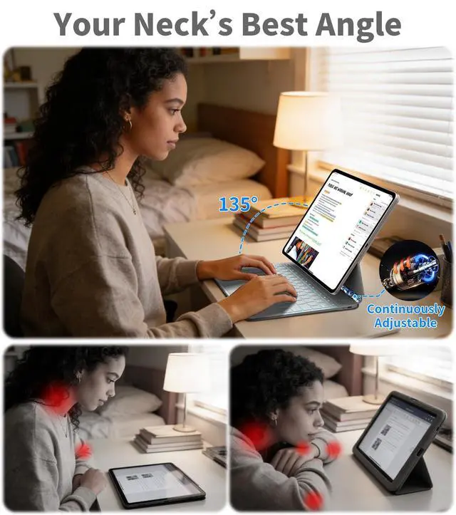 Your Necks Best Angle: The floating cantilever design elevates your screen and cradles it at any angle you need, thanks to its friction hinge. Whether youre working at a table or relaxing on the sofa, it helps you maintain a healthy, pain-free posture ^^ Light, for