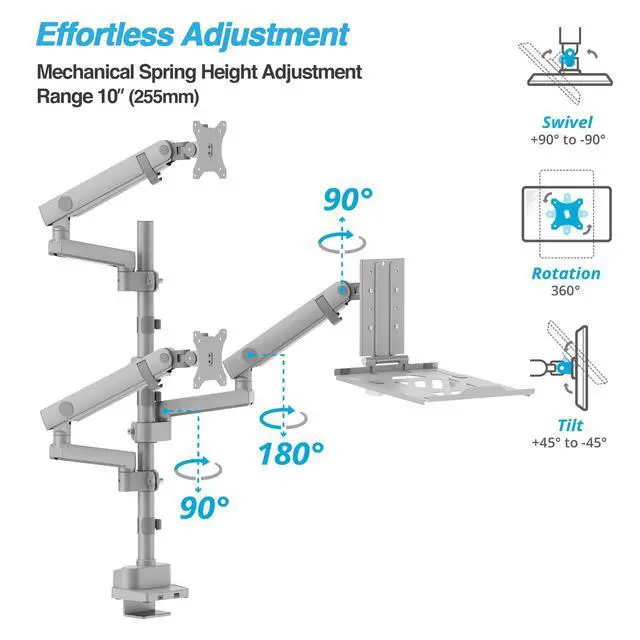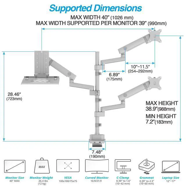 ^^ Space-Saving Desk Mount: Compact C-clamp takes only 5.7" x 4.3" (145mm x 108mm) of desk space, fits desks up to 1.9" (50mm) thick, maximizes work area without sacrificing stability. ^^