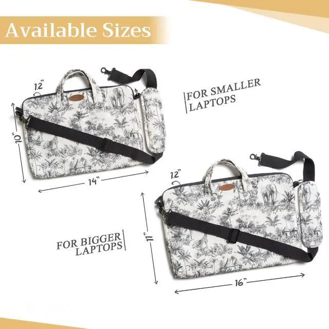 Artsy Designs and Vibrant patterns in vibrant colors provide huge visual interest, setting our bags apart. It is a versatile choice for just daily use, travel or commuting and a true delight to carry around. ^^ Comes in two sizes o Small 14 Width, 10 Length, 1.2 Deep (Outer dimension) Compatible with 12- 13.3 Laptops / Ultrabooks, 13- 13.5 Laptops / Notebooks / Ultabooks. o Large 16 Width, 11 Length, 1.2 Deep (Outer dimension) Compatible with 15 Macbook air / Macbook pro, 15.3 ipad pro and most 14- 14.56 Laptops / Notebooks / Ultrabooks.