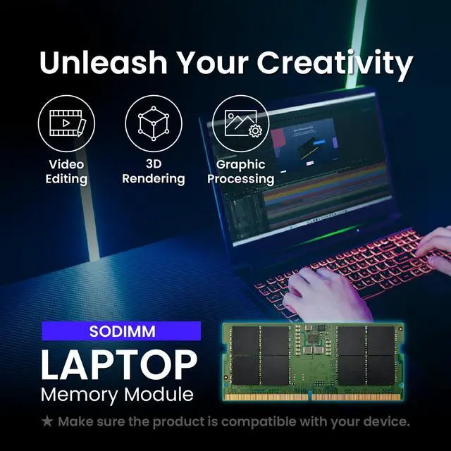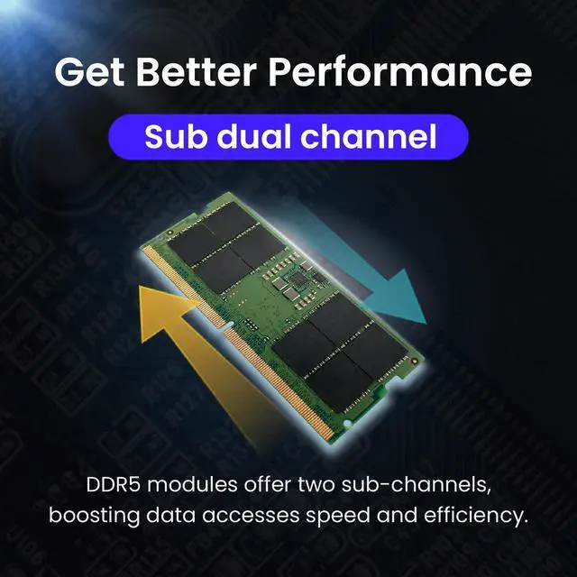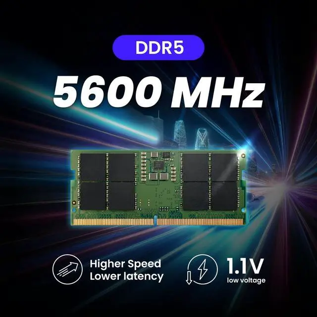 Powerful DDR5 Performance: Enhance your laptop with DDR5 SODIMM memory, offering faster speeds, greater capacities, and energy efficiency for demanding tasks and workloads.