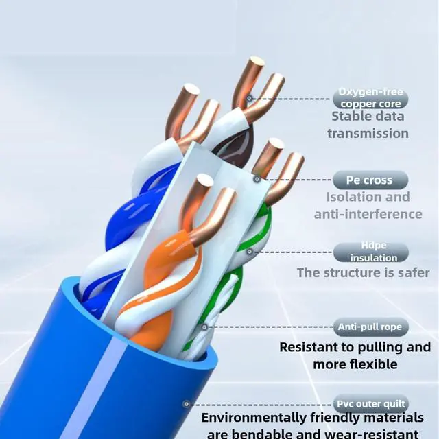 Our Cat6A Unshielded Twisted Pair (UTP) cable features annealed solid bare copper conductors, making it an ideal choice for network installations. This CAT6A bulk cable streamlines professional networking projects, saving both time and costs. The cable ensures a reliable Ethernet connection between your system and networking devices such as routers, switches, or hubs. It offers enhanced signal quality and rapid transmission speeds. The Cat6A 10Gigabit CCA PVC cable is specifically designed for indoor cabling. Its length flexibility makes it suitable for runs of various lengths. The high - quality LAN UTP cables are sheathed in PVC, ensuring durability and optimal wire insulation.