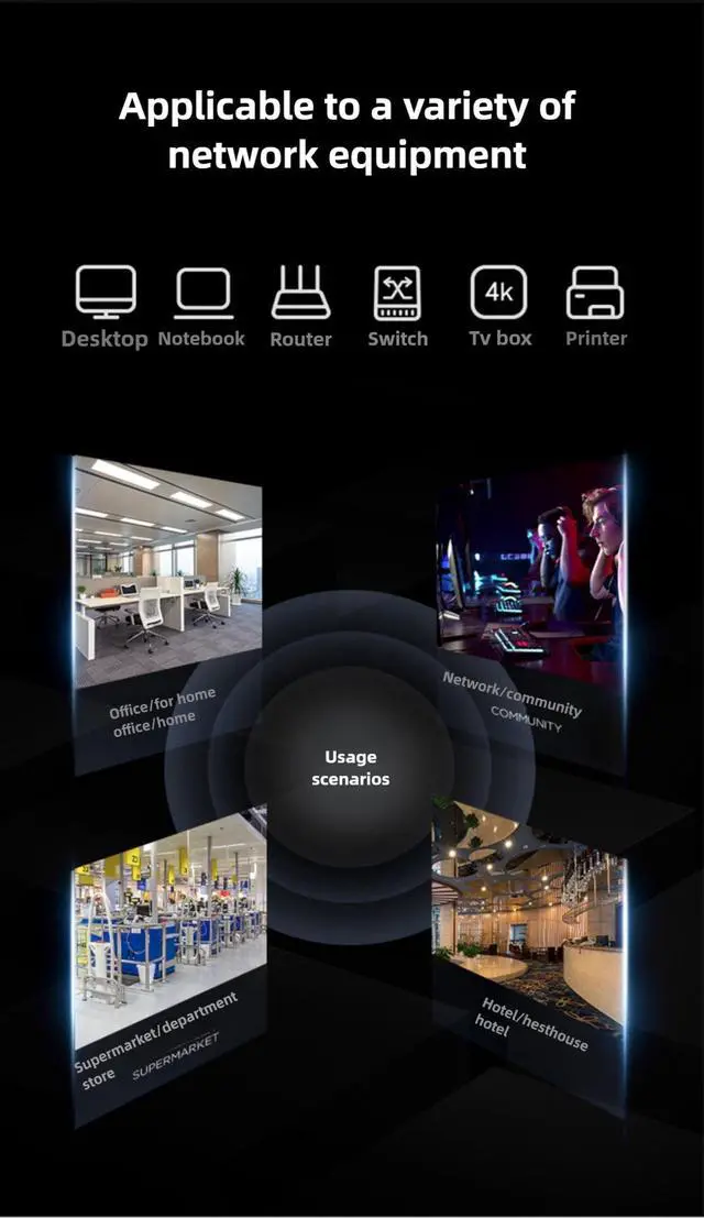 Our Category 6A network cable supports high data transfer rates, delivering excellent transmission performance with minimal signal loss. Depending on the installation environment, it's suitable for 10 - Gigabit Ethernet up to 300 feet. The cable has a test bandwidth of up to 550MHz. Moreover, it supports Power over Ethernet (PoE/PoE+/PoE+ [IEEE 802.3 af/at/bt]) with a maximum power output of 60W and 300V DC. This cable is engineered to meet the demands of high - bandwidth applications, including computers, routers, VoIP phones, IP cameras, printers, game consoles, Ethernet extenders, and switch boxes.