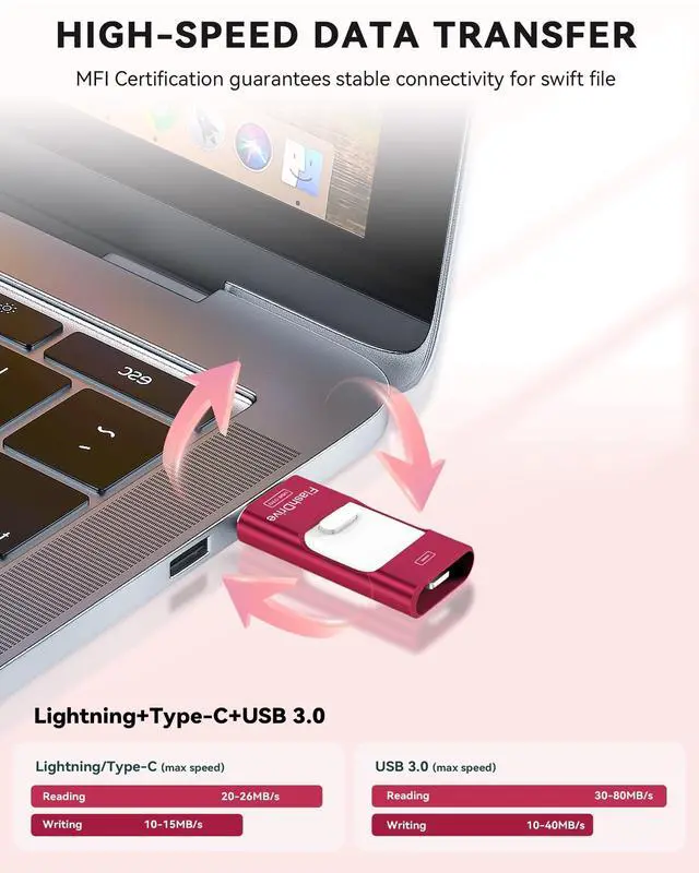Blazing-Fast Transfers Anywhere: Equipped with upgraded high-speed chips, this iphone storage flash drive lets you transfer massive files in secondsno WiFi, no data cables needed. Save time when sharing photos or moving large video projects, whether youre traveling, working, or creating content.
