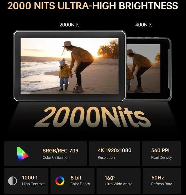 ^^ PROTECTIVE DESIGN: Comes with a protective monitor cage rig and sunshade hood for optimal viewing and equipment safety. Built with an ultra-quiet cooling fan and temperature sensor, the monitor automatically adjusts fan speed based on the device's temperature.