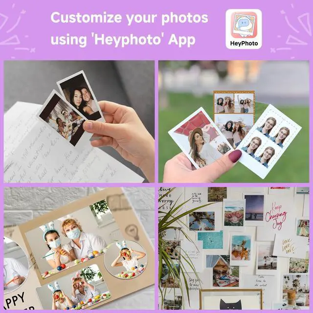 Setup is a breeze: just press the button, load the ribbon included in the box, and you're ready to print 10 vivid photos in seconds. ^^ [Superior Quality]This photo printer for iphone reserves your memories in stunning detail and durability. Our advanced 4-PASS dye-sublimation technology prints photos in layers of color followed by a protective laminate. The result is rich, flawless prints that are resistant to fingerprints, water, and fadingensuring your cherished moments stay vibrant for generations. ^^ [Unlock Creativity]Your printing journey is powered by the free Heyprint app. After a quick pairing, you can instantly print, or first personalize your photos with a wealth of creative tools. Apply filters, add cute stickers and frames, or create collages. The app also offers a unique AR scanning feature that brings your printed photos back to life with digital animation. Choose between bordered prints to handwrite precious notes, or borderless photos for a modern, full-image look. ^^ [Perfect Gift]More than a portable photo printer, it's a gateway to shared experiences and heartfelt gifts. This complete bundle makes it an ideal present for any occasion, allowing friends and family to create physical photo albums, unique DIY projects, or spontaneous scrapbooks.