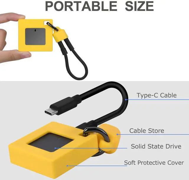 What's Included: 1 x Portable External Solid State Drive1 x SSD Soft protective cover1 x USB 3.2 Gen2 Type C Cable1 x USB 3.1 to Type C Convertor1 x User's manualThe Actual Usable Storage Capacity May Be Less: Type of file system used for the drive, partitioning arrangement and type of operating system could affect the actual storage capacity displayed by your computer.