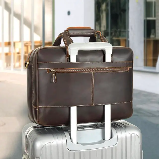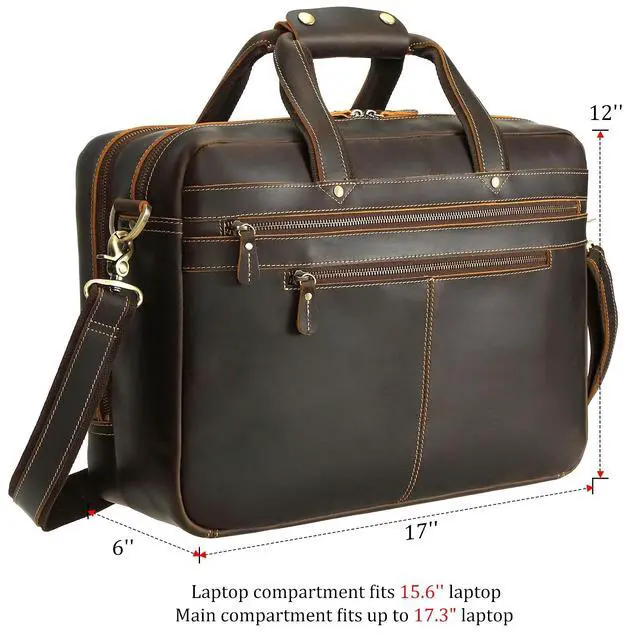 Please Note: Because this laptop bag is made with authentic genuine leather and is sealed during shipping, the leather may have a strong smell upon opening the package. This is normal. Once opened the smell will fade after a few hours. Please be aware that the dimensions of this bag are as follows: Length 17" (43cm) x Width 6" (15cm) x Height 12"( 30.5 cm).