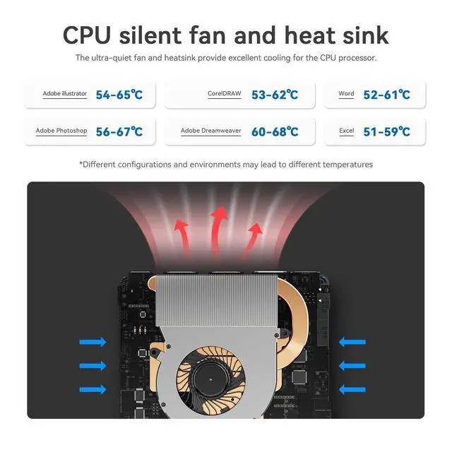 4K@60Hz Dual Screen Display The Mini Computer equipped with Intel UHD Graphics eligible to support 4K@60Hz, which brings you more clearer, smoother video experience. HDMI x 2 allows you to connect two monitors at the same time, allowing you to work more efficiently and with max productivity!