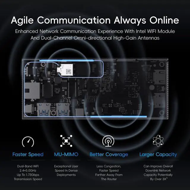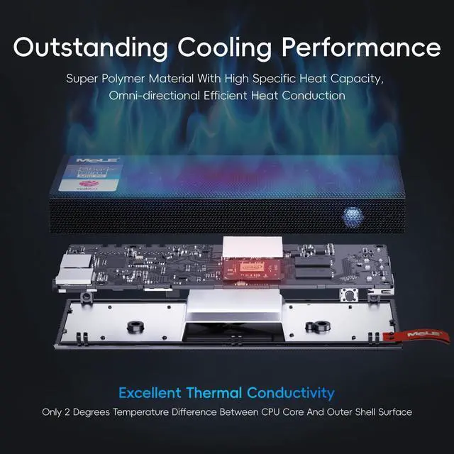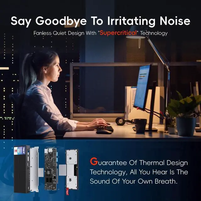 It provides a quiet and stable computing environment, supports 24/7 operation. While its unique design ensures dust resistance and silent operation, please note that fanless mini PCs will have a surface temperature of 55C to 70C, which is hotter than the case temperature of traditional fan-cooled mini PCs, but meets the safety standards of the International Electrotechnical IEC62368- 1:2018.