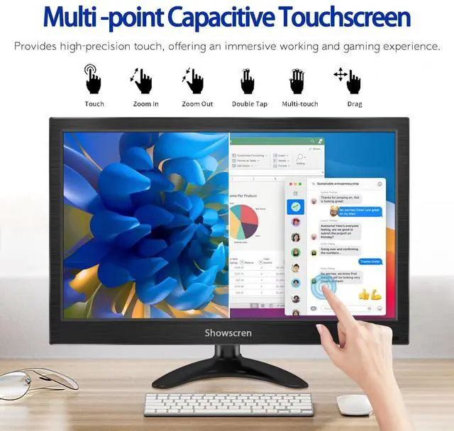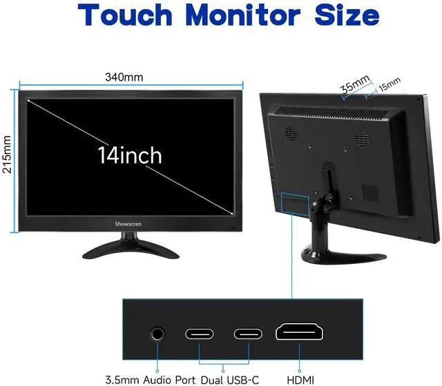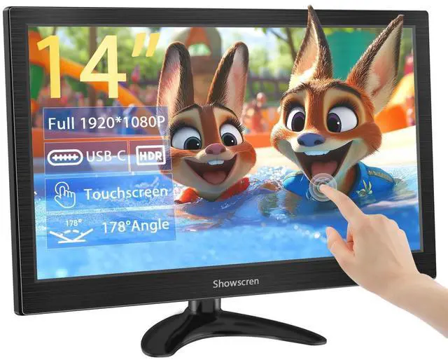 Excellent FHD Computer MonitorThis 14 inch small computer monitor displays vibrant and bright images. It features a high-quality IPS panel, 1920*1080 resolution, 100% sRGB, a 1000:1 contrast ratio, 300 nits of brightness, and a 178 viewing angle. With HDR rendering technology, it provides deeper contrast and clearer picture details, offering an unparalleled viewing experience. ^^ Smooth Multi-Touch TechnologyThis touchscreen monitor utilizes capacitive touch technology, supporting sensitive multi-point touch recognition for precise interaction. Through the monitor's OSD menu, you can easily customize brightness, color, and other settings.