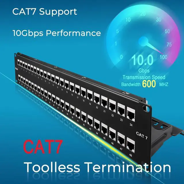 Toolless terminationThis home networking panel does not require puch down tools. Pass through 24 port patch panel came with couplers making it easier to connect the cables. This Cat7 patch panel has more expansion and upgrade capabilities than 12 port patch panel and 16 port patch panel, and also can use two of 24 port patch panel cat7/ Cat6a instead of 48 port patch panel.