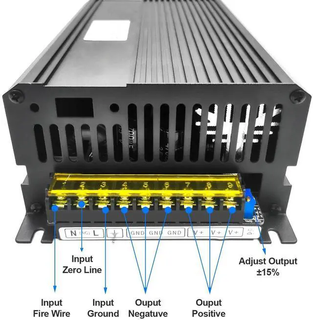 [Product spcificate] Input 100-130vac 50/60HZ, Rated Power 1500w, Output 24VDC 62.5A, ^^ [Advantage] Minl size, can meet customs special requst, 2. Two fan for cooling. 3. output votlage adjust +/-15%. 4 Full power, 5, High quality.. ^^ [widely use] DC MotorLED LightIndustrial, CCTV Systerm, laser machine, Any AC to DC Convert situation.