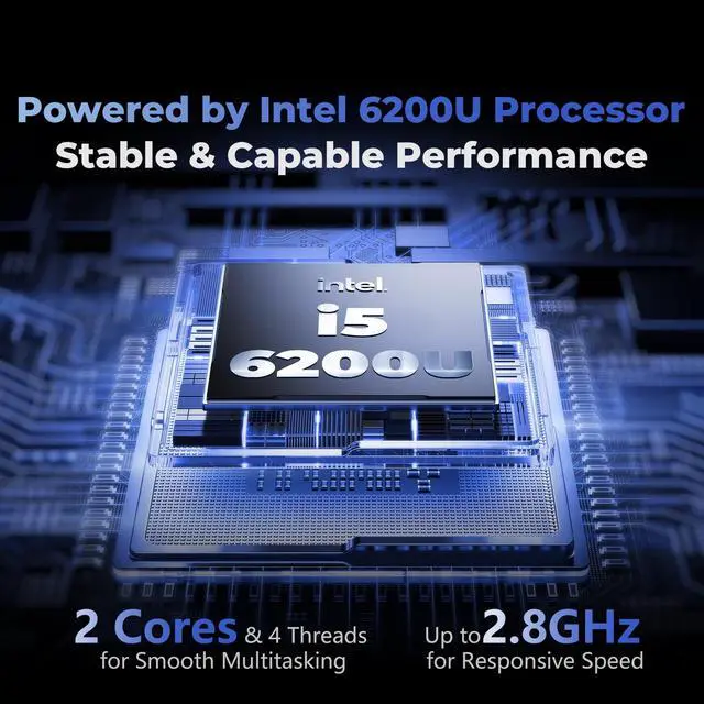 Hassle-Free Ownership & SupportRest easy with our comprehensive 2-year warranty and generous 6-month return policy. Our dedicated customer care team is available 24/7 online and by phone on weekdays (+1 888-863-5918) to ensure you get prompt assistance whenever you need itbecause your satisfaction is our priority. ^^ 16GB RAM & 512GB SSD for MultitaskingSmoothly handle work and entertainment with 16GB RAM and a 512GB SSD. This laptop computer offers fast performance and ample storage for all your files, making multitasking effortless. ^^ Stable & Efficient PerformancePowered by the i5-6200U Processor (2 Cores, 4 Threads, up to 2.8GH z), this Win 11 laptop delivers capable and stable performance for your daily computing tasks, from office work and web browsing to media consumption.