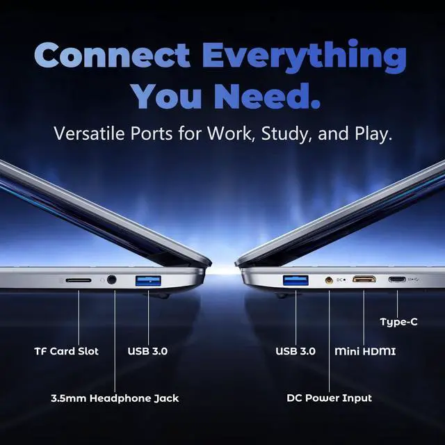^^ 15.6" FHD IPS Display & Stable PerformanceA vibrant 15.6 -inch FHD IPS screen offers wide-viewing angles. Powered by a 4-core processor, this Win laptop delivers reliable performance for everyday tasks and streaming. ^^ Versatile Ports & Flexible 180 DesignConnect with ease using USB 3.0, Mini HDMI, and a TF card slot. The 180 hinge and lightweight design make this portable laptop adaptable for presentations, study, or movies. ^^ Long-Lasting 38Wh Battery & Backlit KeyboardThe high-capacity battery is built for extended use, perfect for taking notes in class or completing daily tasks.