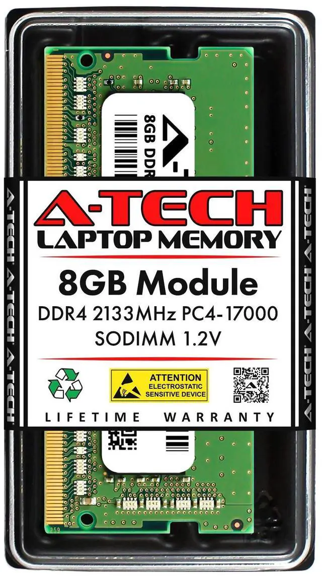 Compatible with select DDR4 Laptop, Notebook computers + Easy to install at home, no expertise required ^^ Maximize your system's performance, boost loading speeds and multitask with ease ^^ Backed by A-Tech's Lifetime Warranty + Friendly tech support team available to help before and after your purchase ^^ Single 8GB RAM Module ^^ DDR4 SO-DIMM 260-Pin ^^ Speeds up to 2133MHz, PC4-17000 / PC4-2133P ^^ NON-ECC Unbuffered ^^ 1Rx8 or 2Rx8 - Single or Dual Rank ^^ JEDEC DDR4 standard 1.2V