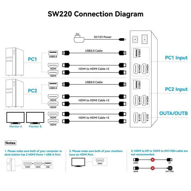 Note: Please make sure your computer has two HDMI ports. ^^ HDMI USB 3.0