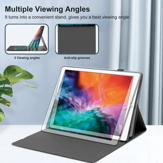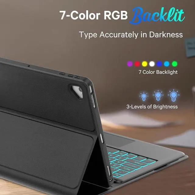 Generation (old model: A1670/A1671/A1584/A1652). Please be kindly check your iPad back model before purchasing. (Not fit for ipad pro 12.9" 2018 release or newer) ^^ 7-Color Backlight & 3 Levels of BrightnessBluetooth keyboard for iPad pro 12.9 has 7 colors of backlight, 3-level for opening backlit and adjusting brightness level. Soft backlight can see all the keys and improve work efficiency at night. Ergonomic and mechanical scissor keys with rebound feature to reduce noise, enjoy comfortable typing even long hours ^^ Multi-Touch TrackpadTransform your ipad pro into a powerful productivity tool with our smart 12.9 inch touch keyboard case. The new ergonomic trackpad for ipad pro 1st/2nd gen 12.9 in case keypad supports clicks, pinching, sliding, and rolling. Just fingertips to accurately control the tablet, edit documents at an unparalleled speed, browse the network, and create presentation ^^ Magnetic Detachable Wireless KeyboardThe iPad Pro 12.9 inch 2nd generation keyboard and case are magnetically detachable, which means the keyboard or case can be used alone, ultra-strong magnetism makes the keyboard securely attached to the protective case while typing. Equipped with multimedia and other useful shortcuts, this removeable bluetooth keyboard provides you with the ultimate convenience ^^ Precise Cutout & Full Body ProtectionThis iPad Pro 12.9 case with keyboard 2nd generation is made of good quality PU leather.