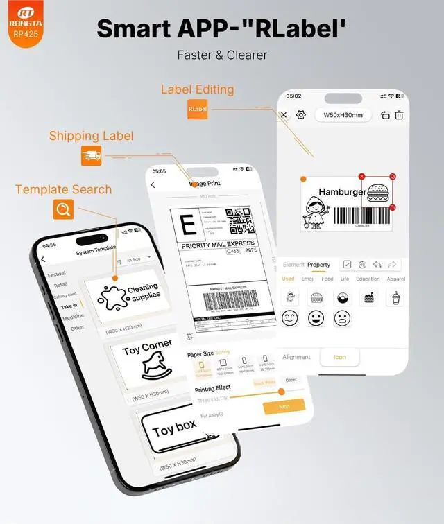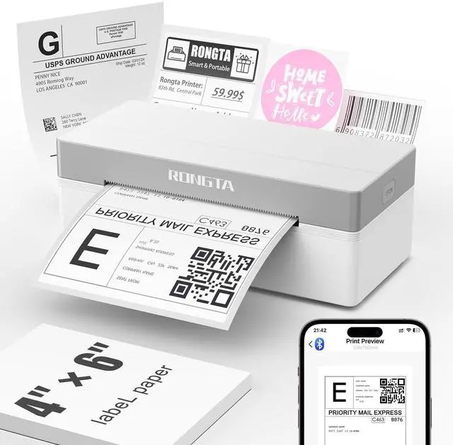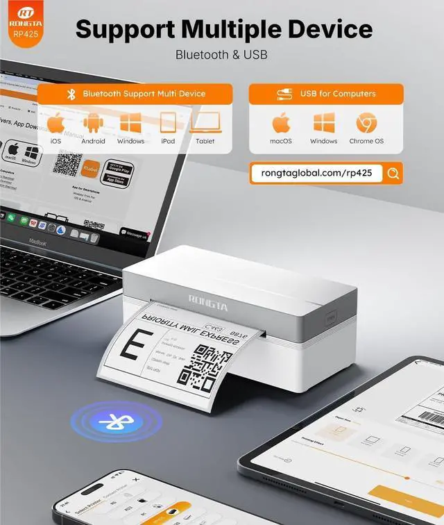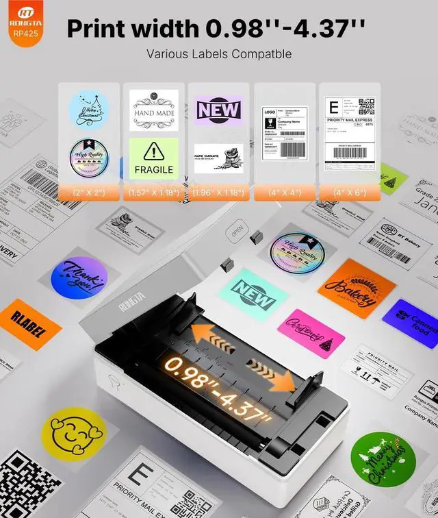 Label maker for Shipping labels & small business labels ^^ supports multiple-size wide wireless printing ^^ Download "RLabel" app for phone to bluetooth print ^^ Download computer driver for PC/Laptop to USB print ^^ Ink-Free Thermal Printing for Sharp Clarity