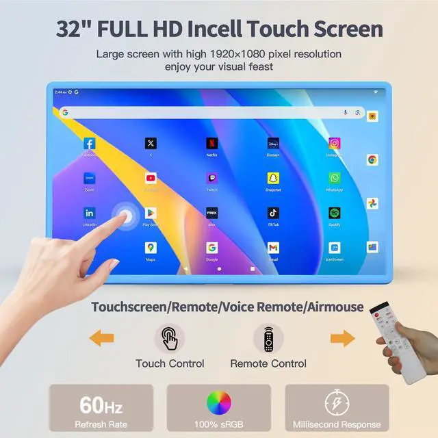 Portable Smart TV: Enjoy stunning visuals on a 32 inch FHD touchscreen smart monitor with vibrant 100%sRGB color accuracy, perfect for Netflix, Youtube and over 100, 000 apps from Google Play Store. ^^ Powerful Android 15 & 5MP