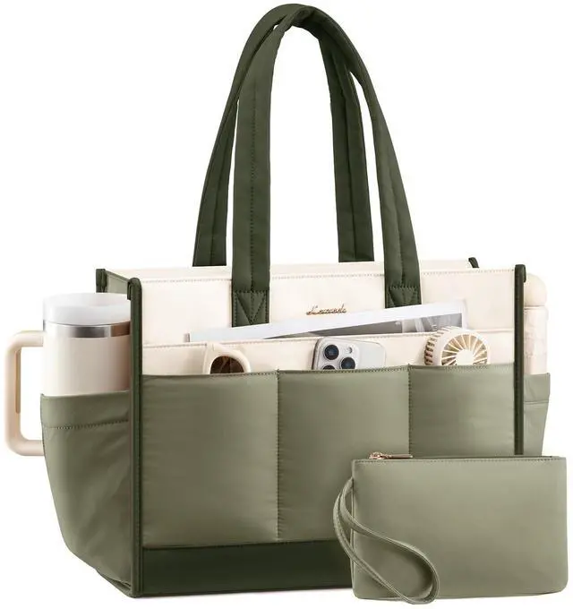 Than Order: With a massive 25-liter capacity, it achieves intelligent organization through 13 cleverly designed pockets. Your 15.6 -inch laptop and 12.9 -inch iPad are protected by dedicated padded compartments, while other items can be easily categorized. Whether it's your commuting gear or travel luggage, everything is neatly organized and readily available. ^^ Designed for large tote cups The interior pocket easily accommodates a 40-ounce Stanley water bottle. Say goodbye to worries about whether it will fit. The exterior front pocket and top zippered quick-access pocket keep your essentials within easy reach.