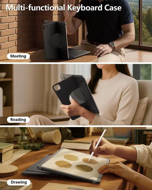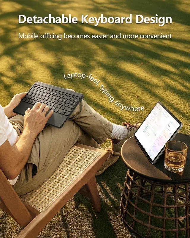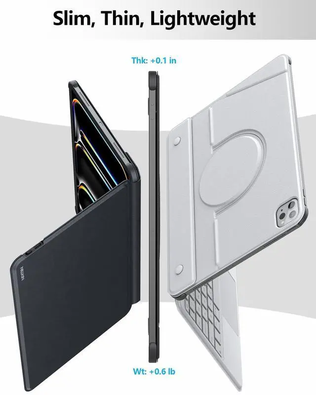 Compared to traditional keyboard case: the keyboard and bracket are forcibly bound together, NILLKIN 13 inch ipad air case's backplate and keyboard can be removed and used as needed, lose 30% weight directly if only carry with backplate for outside. 2. Stability - the traditional keyboard case is connected with magnetic, easy to fall off. We use high-performance imported acrylic adhesive that can tightly adhere to the back of the tablet without leaving any residue, no risk of accidental falls. 3. Flexibility - Compared to the traditional 3-speed fixed angle(15-60), our ipad air m3 13 inch case supports 0-170 free floating, meet your diverse viewing needs. ^^ Ultra-Thin & LightweightWith a thickness of only 0.23 inches, this keyboard of ipad 13 pro case magnetic is very thin and light, make working outside easier and burden free. Remove the keboard, just putting the backplate case on the tablet, the thickness has only increased by 0.1" and the weight has only increased by 0.6 lb, which means you can enjoy a barely-there feel without sacrificing durability or style, Perfect for on-the-go use with NILLKIN ipad air 13 inch slim case keyboard.