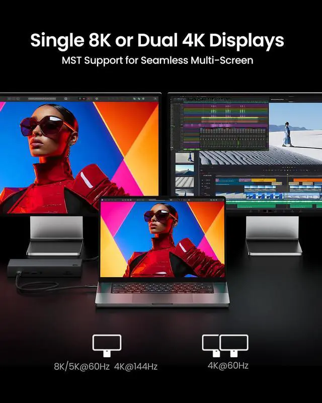 (Note: Both the cable and connected devices must support 40Gbps for optimal transfer speeds) ^^ 8K@60Hz HDR Stunning VisualPerfect for 8K RAW video workflows on MacBook M4. Supports single 8K@60Hz, 5K@60Hz, or 4K@144Hz, as well as dual 4K@60Hz displays with HDR for studio-grade color accuracy.