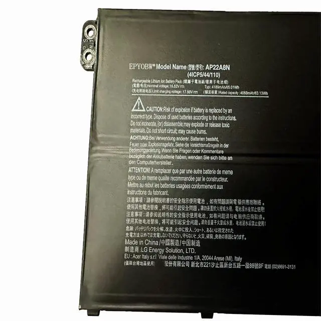 Condition: Brand New. ^^ Replace Part Number AP22A8N ^^ "Compatible with Laptop Models for Acer Swift Go SFG14-71 Series; for Acer Swift Go SFG14-71T Series; for Acer Swift Go SFG14-72 Series; for Acer Swift Go SFG16-71 Series; for Acer TravelMate P2 TMP214-55 Series; for Acer TravelMate P2 TMP214-55-TCO Series; for Acer TravelMate P2 TMP216-51-TCO Series; for Acer TravelMate P4 TMP414-53 Series; for Acer TravelMate P4 TMP416-52 Series; for Acer TravelMate P6 TMP614-53-TCO Series. ^^ Purchase Skills Please open the back cover of the laptop before ordering and make sure that the original battery model is consistent with the listing. After getting the battery, please install the battery correctly, make sure that the battery connector is firmly connected to the laptop motherboard, and use the original charger to charge the laptop. Discharge the new battery to 5% (not 0%), then charge and cycle 3-4 times to wake up the new battery. ^^ EPYOBW Promise All EPYOBW's batteries are certificated by UL/CE/FCC/RoHS. Our batteries are tested by strict quality control standards to ensure that the capacity is true, stable current, low self-discharge.