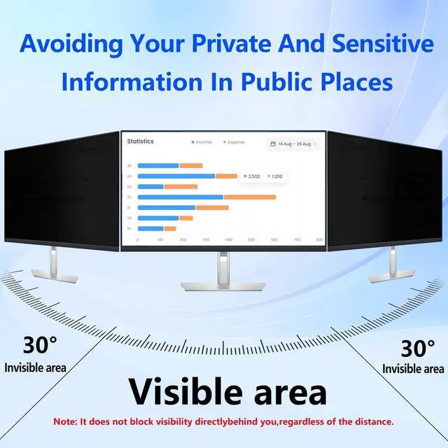 23 Inch Privacy Screen for MonitorMonitor privacy screen 23 inch is a perfect fit for 23 Inch widescreen monitor which have a 16:9 aspect ratio screens measuring 20 1/16 x 11 5/16 inches (Width X Height). You can safeguard any computer, including iMac, HP, Dell, and more. ^^ Maximize Privacy Screen for Computer MonitorThis 23 inch privacy screen protect your privacy from prying eyes, who is in left or right side seat of more than 60 degree angle from your screen. This function works for left and right sides, not for back side.