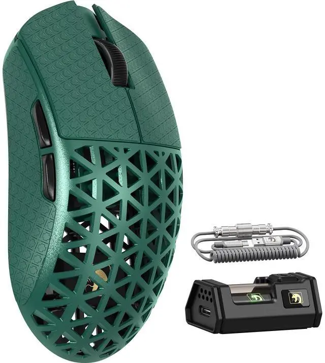 ^^ New-Gen Flagship Sensor: PAW3950MAXFeaturing PixArts latest PAW3950MAX, this cutting-edge sensor delivers 42, 000 DPI, 8000Hz polling, 750 IPS speed, and 50G acceleration for unmatched precision. With lightning-fast response and flawless tracking, its built for pinpoint FPS headshots or high-speed MOBA maneuvers. Trusted by pros, designed for victory. ^^ Super Lightweight at Only 39gThanks to its Carbon fiber composites and holey shell design, M5 ultra-light mouse sheds excess weight, tipping the scales at a mere 39 (3) g. Perfect for all RPG, MMO, FPS, MOBA, Battle Royale and other fast-paced games. ^^ 8000Hz Wireless Polling RateThe M5 Ultra delivers an impressive 8000Hz polling rate in wireless mode, slashing response time from 1ms at 1000Hz to just 0.125 ms. Experience ultra-responsive cursor movements and lightning-fast trigger reactions, giving you the competitive edge you need to dominate when it matters most! ^^ SMARTSPEED ConnectivityStay Connected, Stay Unstoppable Powered by SMARTSPEED Wireless technology, the M5 Ultra offers seamless versatility with ultra-fast 2.4G, agile Bluetooth, and a reliable wired connection. With an extended 200-hour battery life, this mouse keeps you in the game longer, ensuring you're always prepared to dominate.