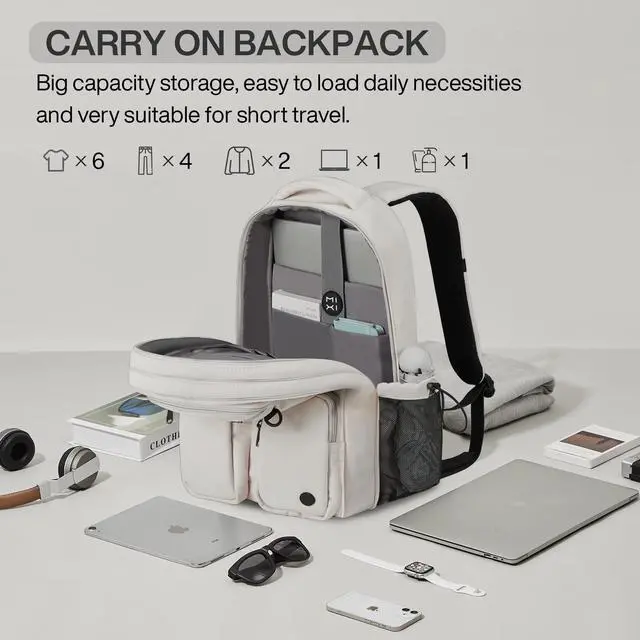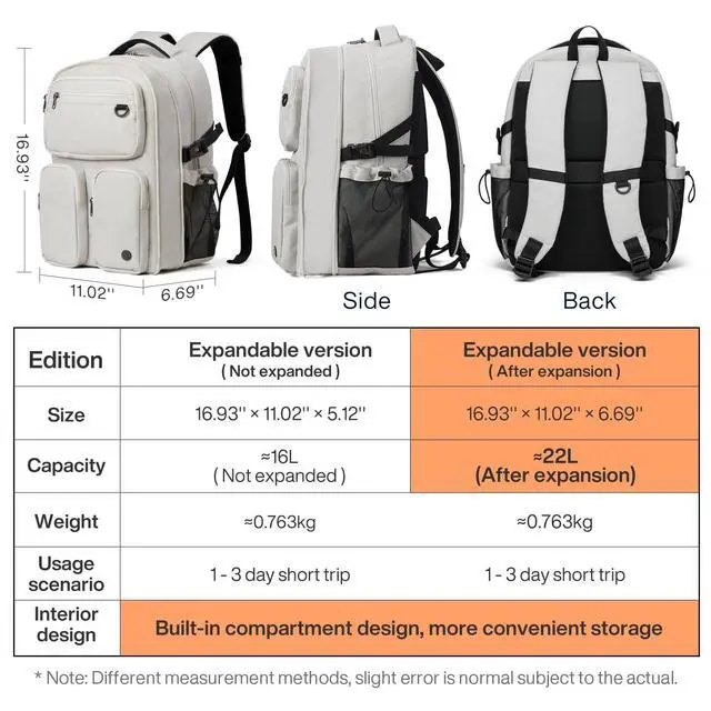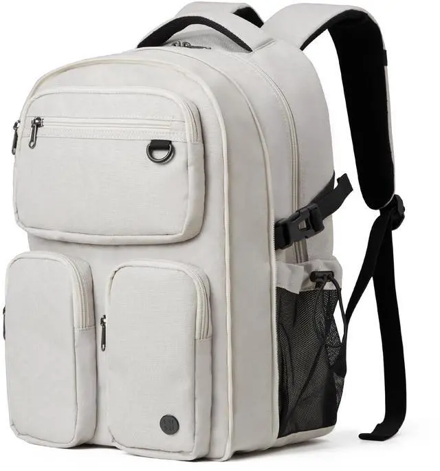 MULTI COMPARTMENTSThis backpack features one main zipped compartment, three zipped front pockets and two side pockets. The main compartment provide one dedicated laptop padding compartment hold 15.6 inch laptop, two side pockets are good for holding water bottles and umbrellas. Well organized and convenient access to your essentials. ^^ DURABLEThe backpack is made with high quality tear and water resistant material, provides extra strength and long-lasting performance with the lightest weight possible. YKK zipper is smooth and durable for a longer usage time. ^^ BREATHABLE & COMFORTABLE Comfortable wide breathable mesh S shaped shoulder straps help relieve the stress from your shoulder for long time wear.