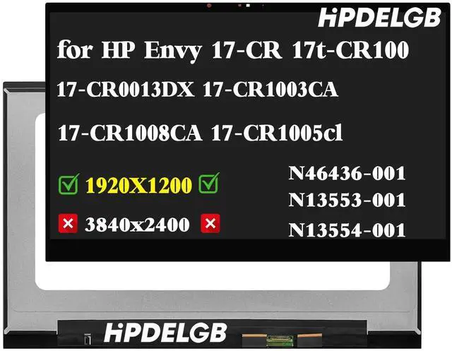 Compatible Model: Replacement for HP Envy 17-CR 17t-cr100 17T-CR0000 17-CR0013DX 17-CR1003CA 17-CR1008CA 17-cr1005cl N46436-001 N13553-001 N13554-001 M93580-443 L81485-AA1 LCD Touch Screen Digitizer Assembly Replacement.