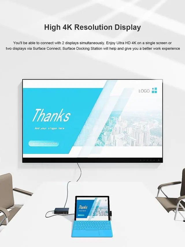 {Surface Dock is quick and easy to use}Connect your peripherals to the Surface Dock, and then connect the magnetic surface connection cable to your device. The docking station is compatible with Surface Pro9/ 8/7/X/6/4/3/2017, Surface Pro 2017, Surface Laptop 4/3/2, Surface Laptop go, Surface Laptop, Surface Book2, Surface Book, Surface Go 3/2/1, and computer periphe