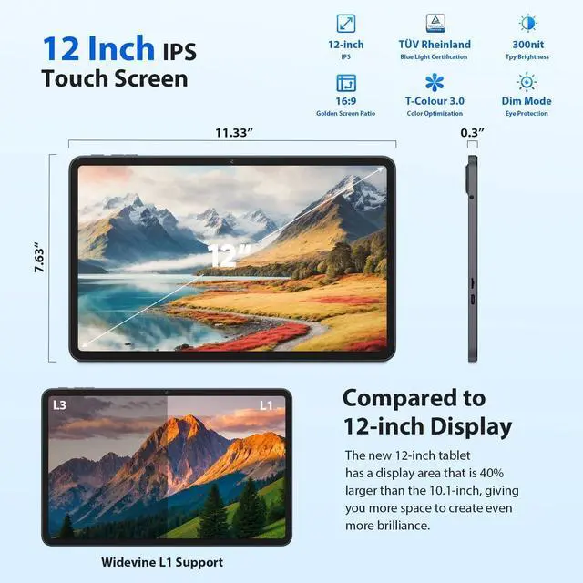 The microSD card slot supports expandable storage up to 2TB (card not included), letting you keep all your media files in one place: e-books, movies, videos, and photos. GMS-certified android tablet grants full access to the Play Store for downloading a vast selection of popular apps ^^ Octa-Core Tablet + 8000mAh BatteryThis AI tablet features a powerful Unisoc T615 processor, which equipped with an efficient octa-core architecture and high-speed storage and memory support. It delivers balanced performance, outstanding imaging capabilities, and excellent power consumption control. Paired with an 8000mAh built-in battery, the TAB9 tablet achieves 30% longer battery lifekeeping up with your cross-day work and play needs ^^ 2.4 /5G WiFi + Bluetooth 5.0 + Dual CamerasTablet has reliable high-speed network performance and stable Bluetooth connectivity for pairing with headphones, keyboards, and other devices, so you can enjoy smooth 4K video streaming with dual-band 5G WiFi, and connect wireless headphones via faster Bluetooth 5.0. The 8MP front camera and 16MP rear camera help you capture life's beautiful moments. At the same time, you can use Smart Lens for photo recognition and text translation ^^ Ample Tablet AccessoriesThe large screen tablet is personalized and user-friendly, so it's an ideal choice for seniors and children.