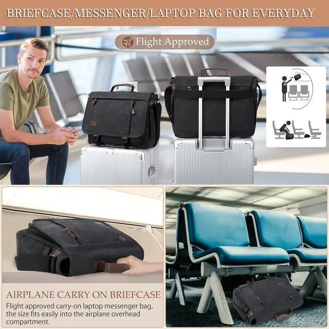 Back: 1 x Rear zipper pocket. ^^ [ ANTI-THEFT DESIGN & LUGGAGE SLEEVE ] Laptop briefcase is designed with 2 strong buckles on the flap and the zippered pocket is close to user which is secure for all your valuables. Designed for friendly airplane travel, this carry on bag with sleeve is perfect for carrying on board during air travel for men/women. ^^ [ MULTI-PURPOSE CROSSBODY BAG ] Stuery men bag is not just a computer/laptop bag, it can also be a briefcases for men. This handbag/shoulder bag/sling bag is not only particularly designed for people in business, work, Casual retro style is also perfectly suitable for most young people to travel. It is a good gift for friends, men, women, husbands and wives.