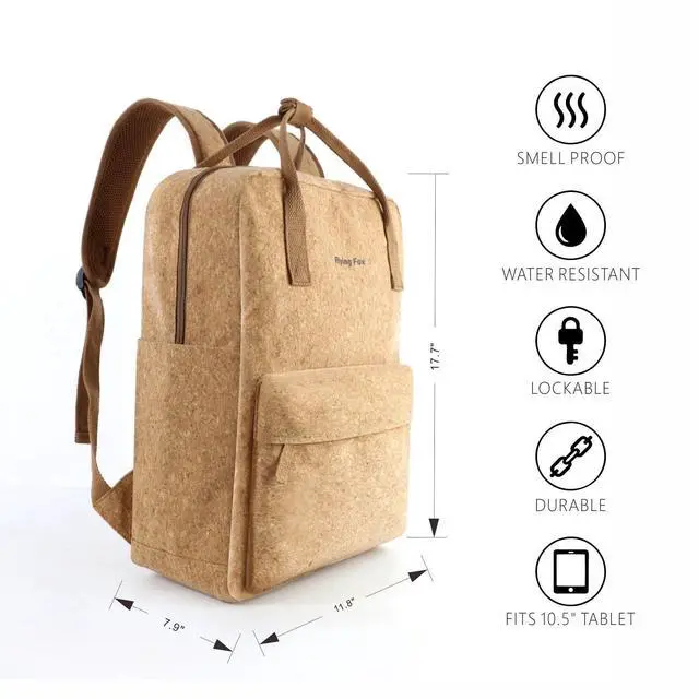Natural Cork Construction: Crafted from natural cork material, features a dedicated compartment designed to fit laptops up to 17 inches ^^ Lightweight and