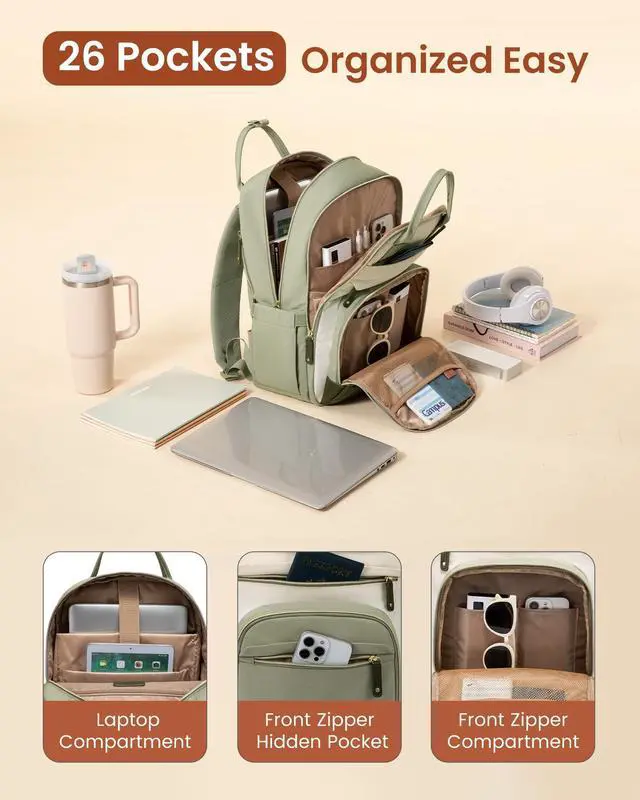 ^^ LARGE CAPACITY: One backpack to solve all travel troubles. The large capacity laptop backpack has 6 compartments and more than 26 pockets, which can organize your travel items in an orderly manner, easy for holding laptop, ipads, Phone, binder, water bottle, umbrella, readers, journal, magazine, clothes, pens, wallet and so on.