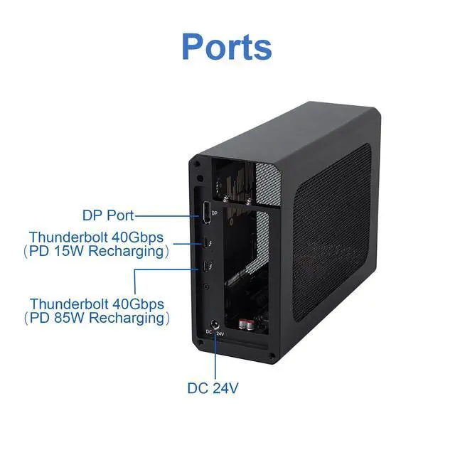 Multiple Interfaces: Features one Thunderbolt port with PD 85W charging, one Thunderbolt port with PD 15W charging, and one DP port. Supports PCIe 3.0 x16 data transfer mode ^^