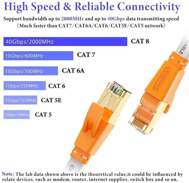 Universal Compatibility: The Cat8 internet cable backward compatible with Cat5, Cat5E, cat6, cat6A and Cat 7 equipment and works perfectly with networking switch, routers, modem, PS3, PS4, X-box, patch panel, servers, networking printers, laptop, coupler, hubs, smart TV, and other device with RJ45 connectors. It is also perfect for AI (Artificial Intelligence) smart products such as Alexa, Google Home, Apple Siri and so on ^^