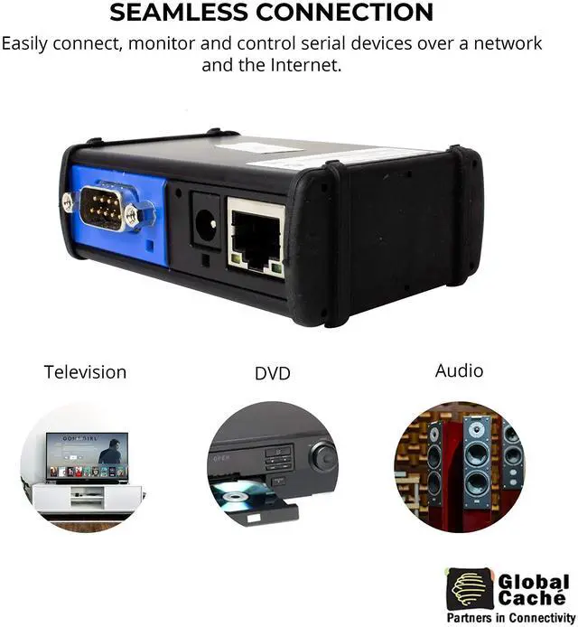TURNS RS232 SERIAL DEVICES INTO IP-ENABLED - The Global Cache IP2SL enables serial-controlled appliance into remote-controlled devices by connecting them to the internet via wired TCP/IP connectivity. ^^ REMOTELY CONTROLS SERIAL DEVICES - You can monitor, and automate serial devices such as speakers and televisions with the IP2SL by connecting them thru the RS232 port at the back of the unit. ^^ PROVIDES FAST CONNECTION - The IP2SL converter features one male DB9 connector that supports 1200 baud to a 115.2K baud data rate. It instantly connects a serial device to an Ethernet. ^^ OFFERS SIMPLIFIED SETUP - It has an onboard web server for easy network discovery and configuration.