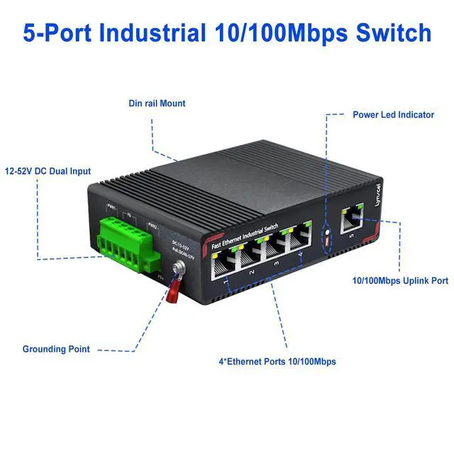 Ultra Industrial Protection: The din rail ethernet switch is IP40 protection grade, -40~167F operating temperature. Anti-lightning, anti-static, anti-electromagnetic interference, surge protection, work well in various harsh environments.