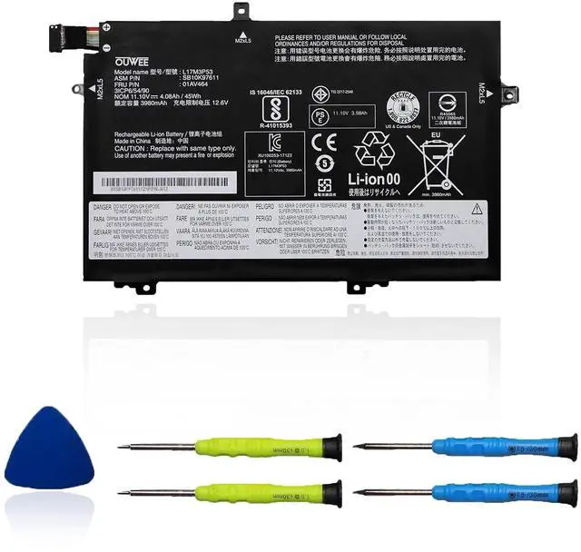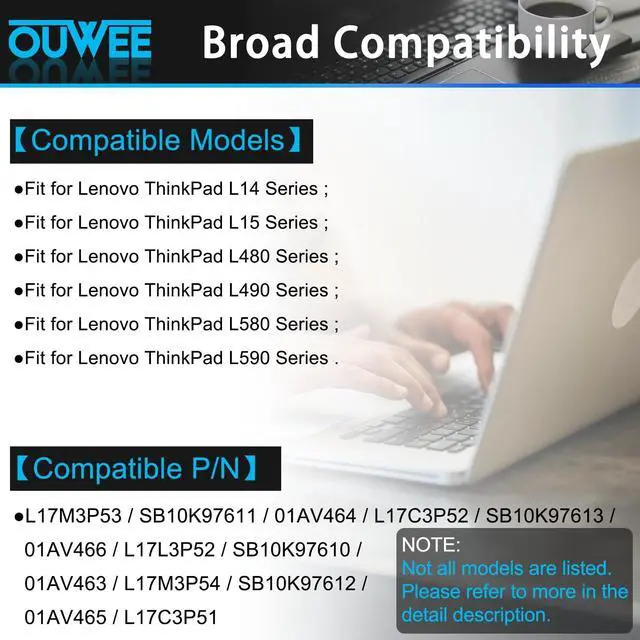 Replacement for Part Number: L17M3P53 / SB10K97611 / 01AV464 / L17C3P52 / SB10K97613 / 01AV466 / L17L3P52 / SB10K97610 / 01AV463 / L17M3P54 / SB10K97612 / 01AV465 / L17C3P519. Compatible Models (use "Ctrl+F to find your model quickly")Fit for Lenovo ThinkPad L14 Series Notebook; Fit for Lenovo ThinkPad L15 Series Notebook; Fit for Lenovo ThinkPad L480 Series Notebook; Fit for Lenovo ThinkPad L490 Series Notebook; Fit for Lenovo ThinkPad L580 Series Notebook; Fit for Lenovo ThinkPad L590 Series Notebook. Not all models are listed, please check the part number of your original battery. 10.