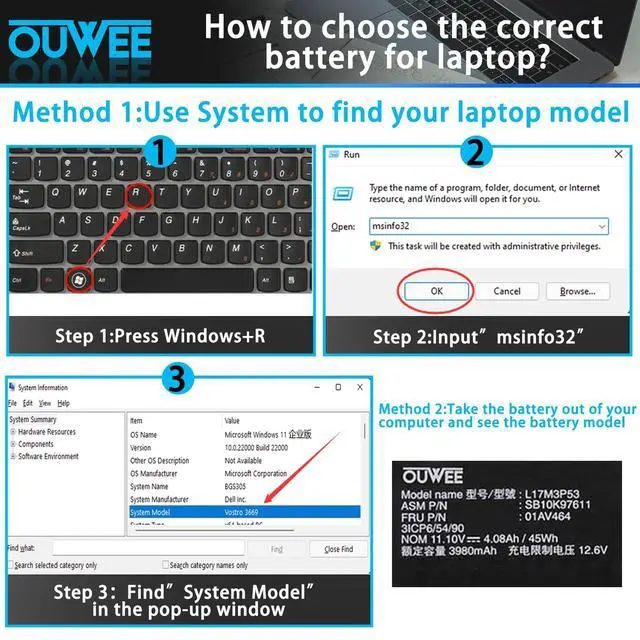 Welcome to OUWEEOUWEE are mainly sold adapter, laptop and Tablet battery, power bank, etc. Before placing your order, we highly suggest you to open the back case of your latptop and check out the exact part number of your laptop's original battery. 1.