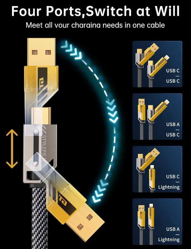 Versatile Design: Our USB-C cable covers all your charging needs with 4 different charging combo. (USB-C to USB-C, USB-C to L, USB-A to USB-C, and USB-A to L). Compatible with most devices, its perfect for travel and everyday use, offering ultimate convenience in a single cable ^^ 60W