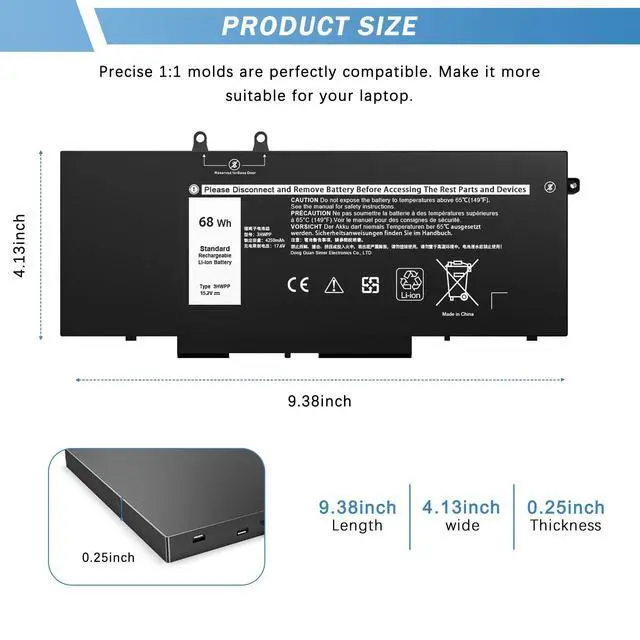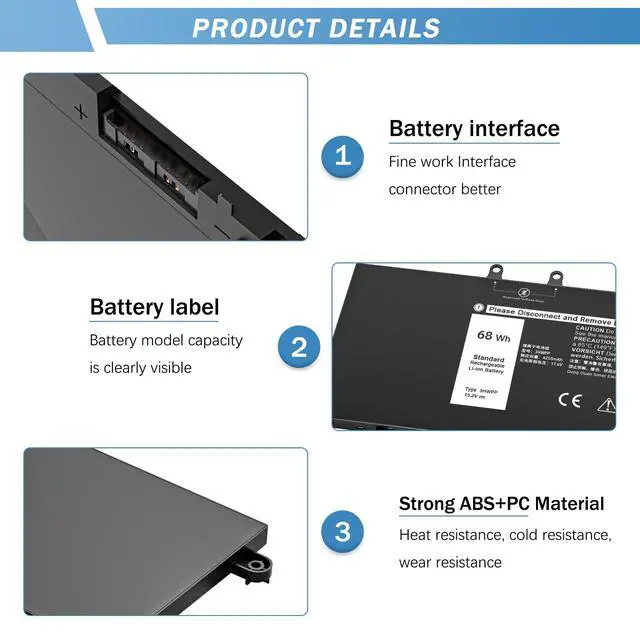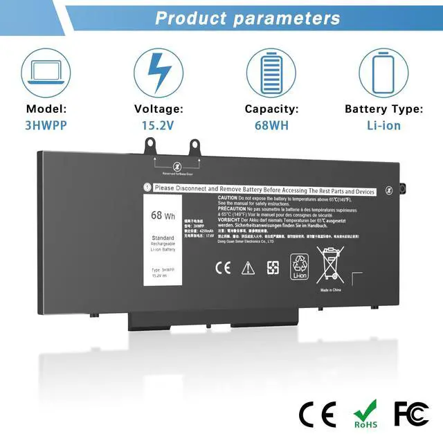 Grade Cells: YUERYE 3HWPP battery has the same life as the original battery, even more than the original battery. Latitude 5410 battery replacement includes built-in circuit protection for steady performance and provides protections against overcharging, over-discharging, and short-circuiting ^^