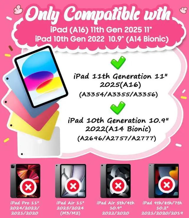 Compatibility: It's only compatible with iPad 11-inch (A16) 11th generation 2025 and iPad 10th Generation 10.9 -inch (A14 Bionic) 2022 (Model